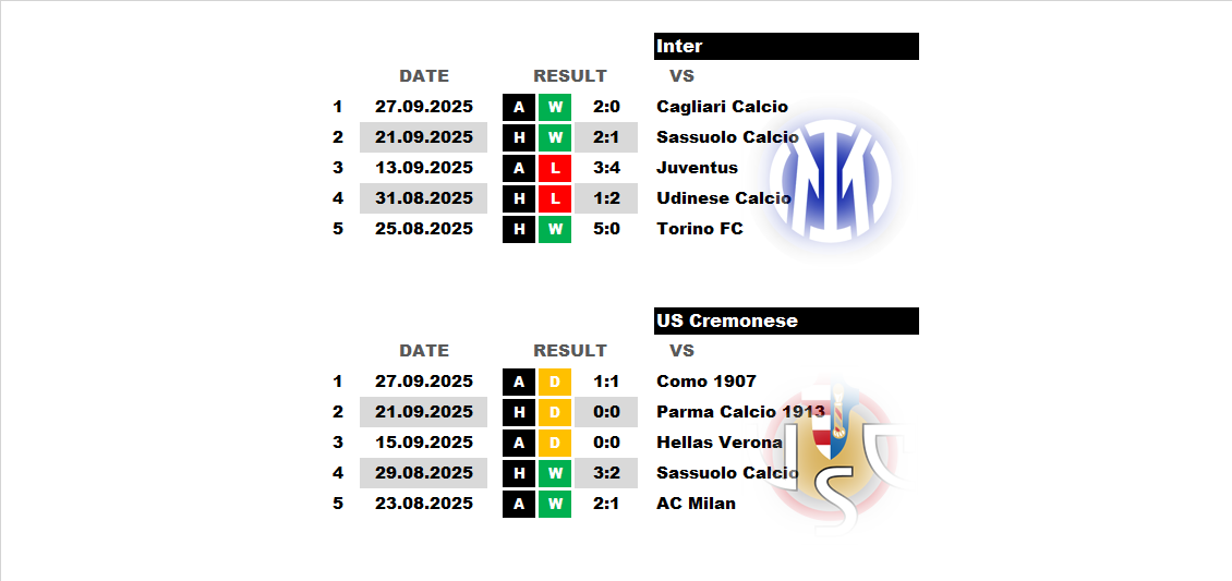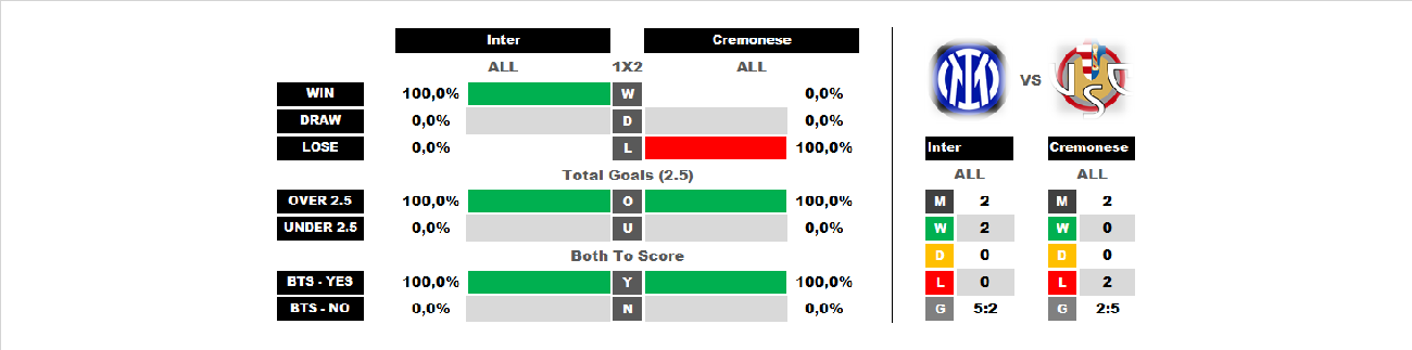 BetTop-5 опубликовано 02.10.2025 15:19 Internazionale - Cremonese 19:00 04.10.2025 Football Italy. Serie A. Cremonese Serie A Italy Internazionale 0 7